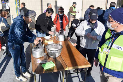 我々ASVNは、炊き出し訓練を担当しました。炊飯袋を使っての非常食の作り方ですが、ライフラインが途絶えた時の生き延びる術を説明しました。うしろにある、のぼり旗にも書いてあるとおり、